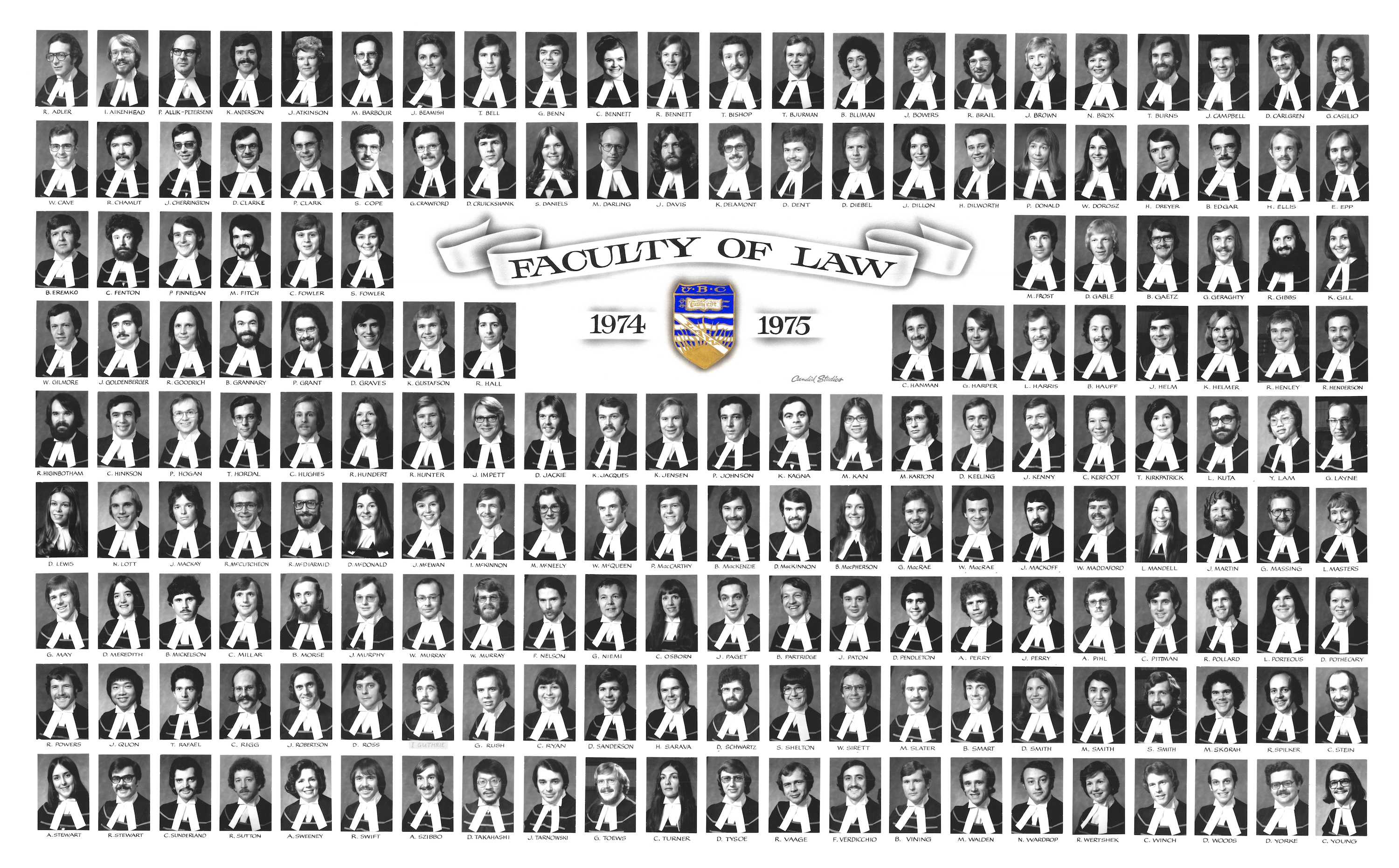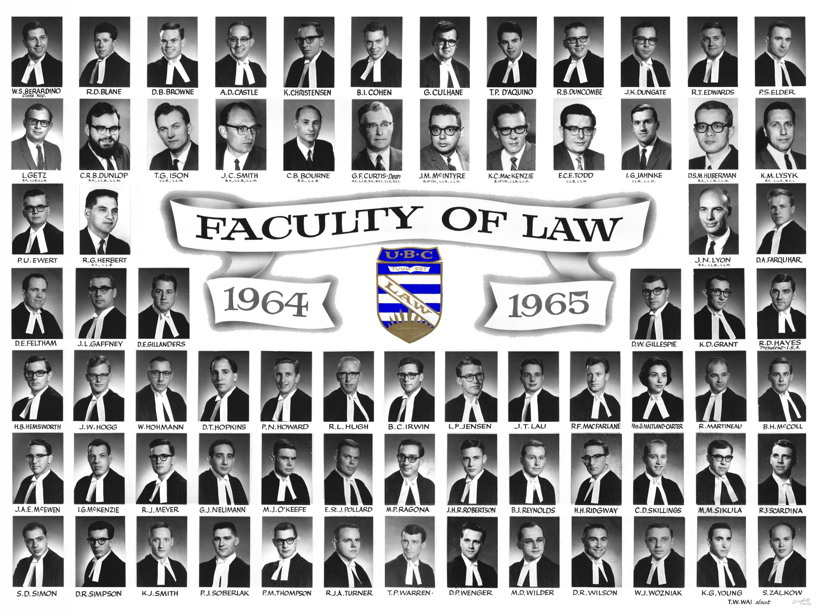 Further class photographs from the University of British Columbia Faculty of Law, now known as the Peter A. Allard School of Law, can be found at this link: My Graduating Class | historyproject.allard.ubc.ca.
